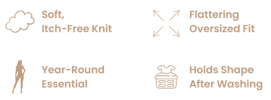 THE FIT:Relaxed and generously cut, designed for an effortlessly chic oversized look. The draped silhouette flatters all body types, while the soft knit adapts seamlessly to your shape for a cozy, comfortable fit.
