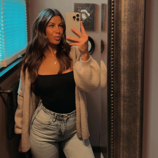 Caring for your cardigan is simple—just machine wash on a gentle cycle in cold water and lay flat to dry. Avoid using bleach or harsh detergents to preserve softness and shape.